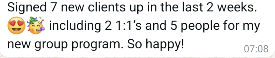 Client L. closed down her membership that was started from misalignment, and signed 7 high-ticket clients in two weeks off the back of this decision.