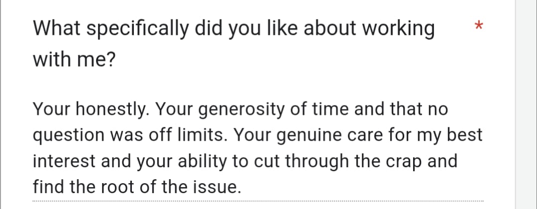Client E. reworked her entire business schedule, hired a team and was able to take multiple trips away every year as a result of doing this work.